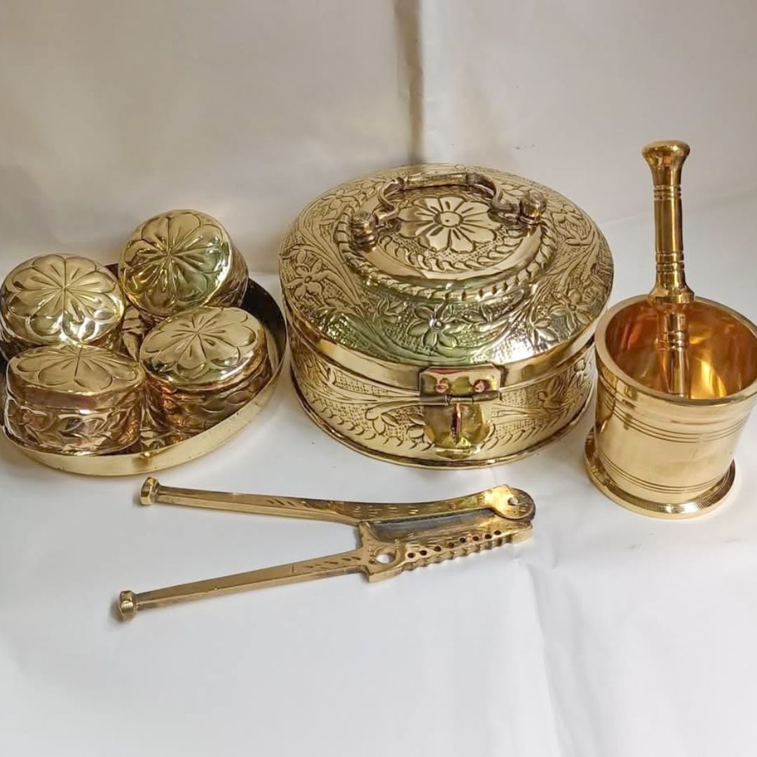 Brass Mina kari puja thali set – 7 pieces set – 1 kg