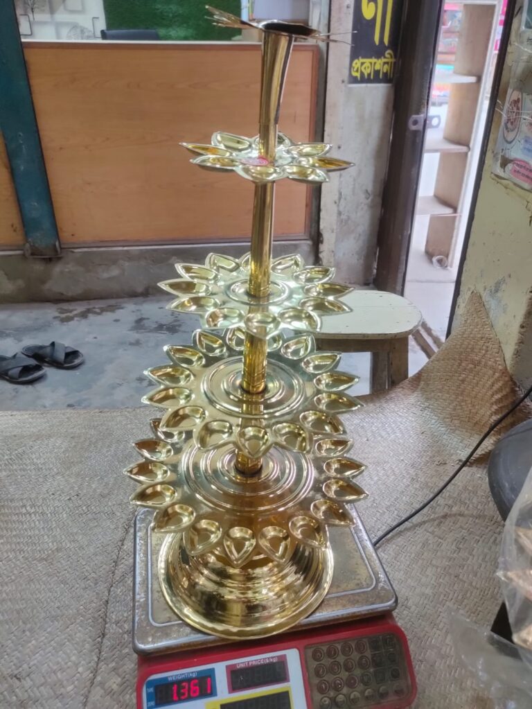 পিতলের ইন্ডিয়ান ৫৪ প্রদীপ – ১৮ ইঞ্চি | ওজন ১.৩ কেজি | খাঁটি ব্রাস | পূজা ও হোম ডেকোরেশন প্রদীপ
