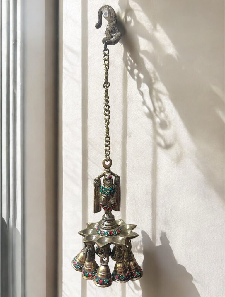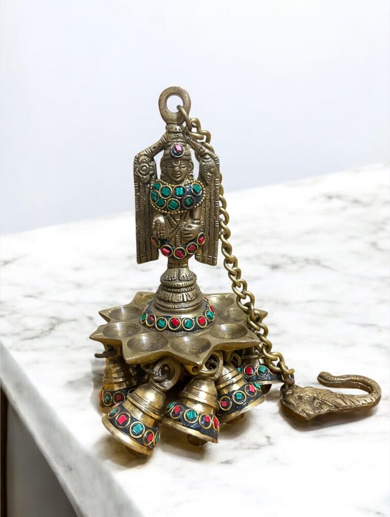 তিলোপতি বালাজি ৯ প্রদীপ, সাথে ঘণ্টা ও চেন । পূজা, মন্দির ও হোম ডেকোরের জন্য একেবারে উপযুক্ত।