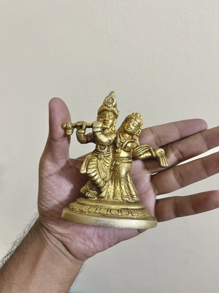 পিতলের এন্টিক ডিজাইনের রাধা কৃষ্ণ বিগ্রহ – ৪.৪ ইঞ্চি