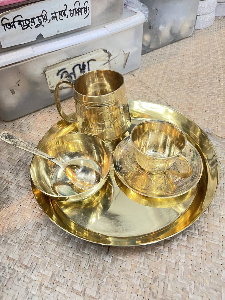 পিতলের থালা – মগ – বাটি – চামচ – কাপ পিরিচ সেট – ১ কেজি ৪০০ গ্রাম