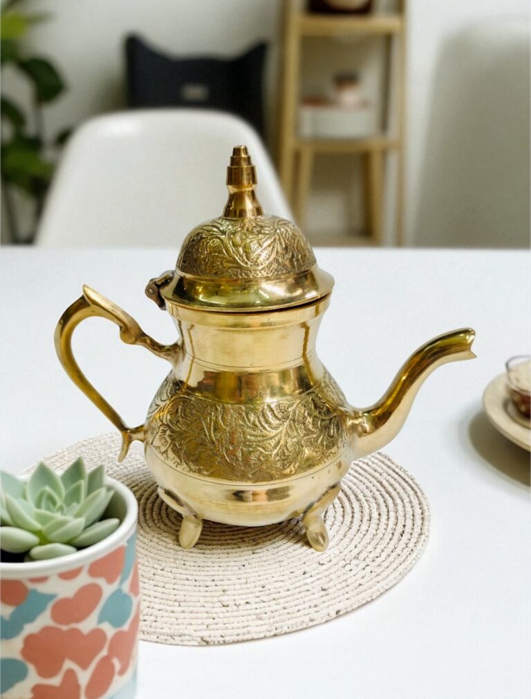 পিতলের নকশা টি পট/কেটলি ৬০০ মিলি – ঐতিহ্যের আভিজাত্য চায়ের কাপে