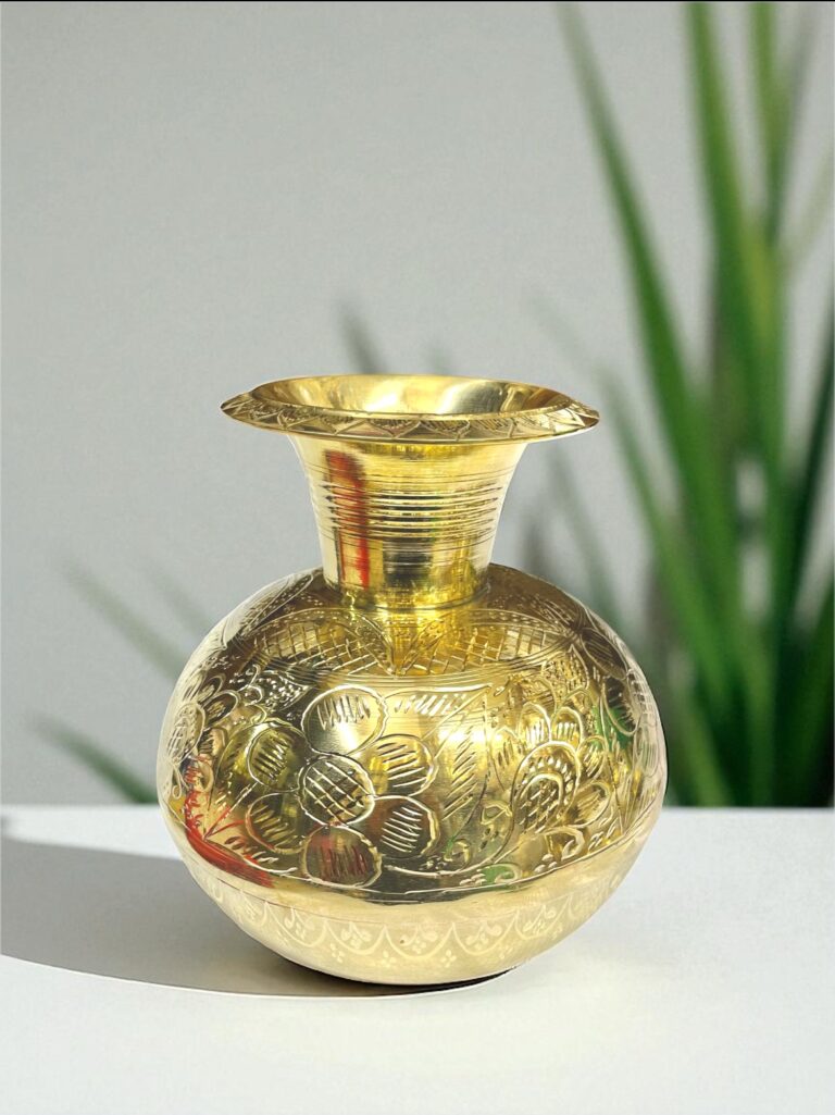 পিতলের প্রিমিয়াম নকশা কলস – ৩ লিটার | ২ কেজি ৪০০ গ্রাম | হাতে তৈরি