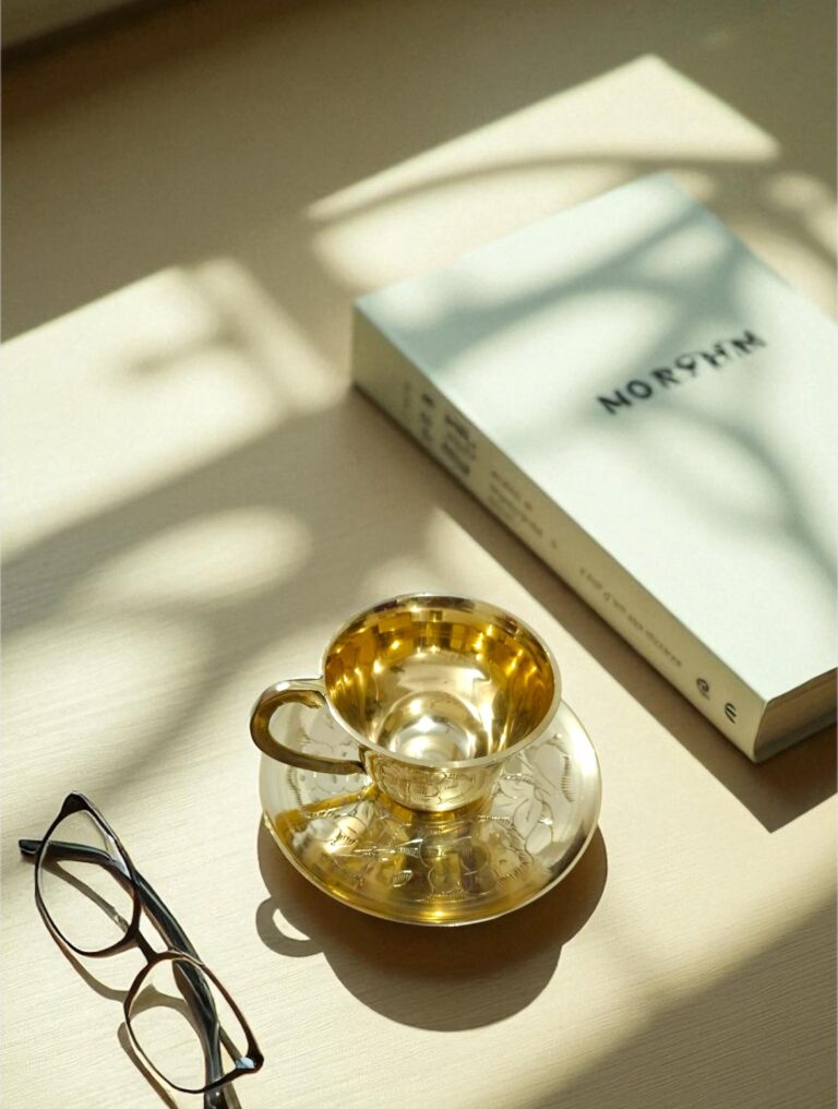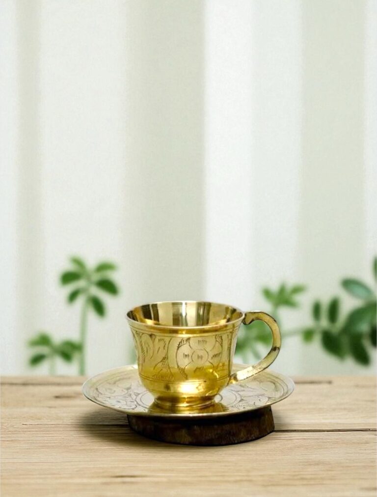 Handcrafted Brass Tea Cup & Saucer Set – Traditional Design (200g, Large Size)