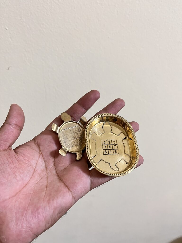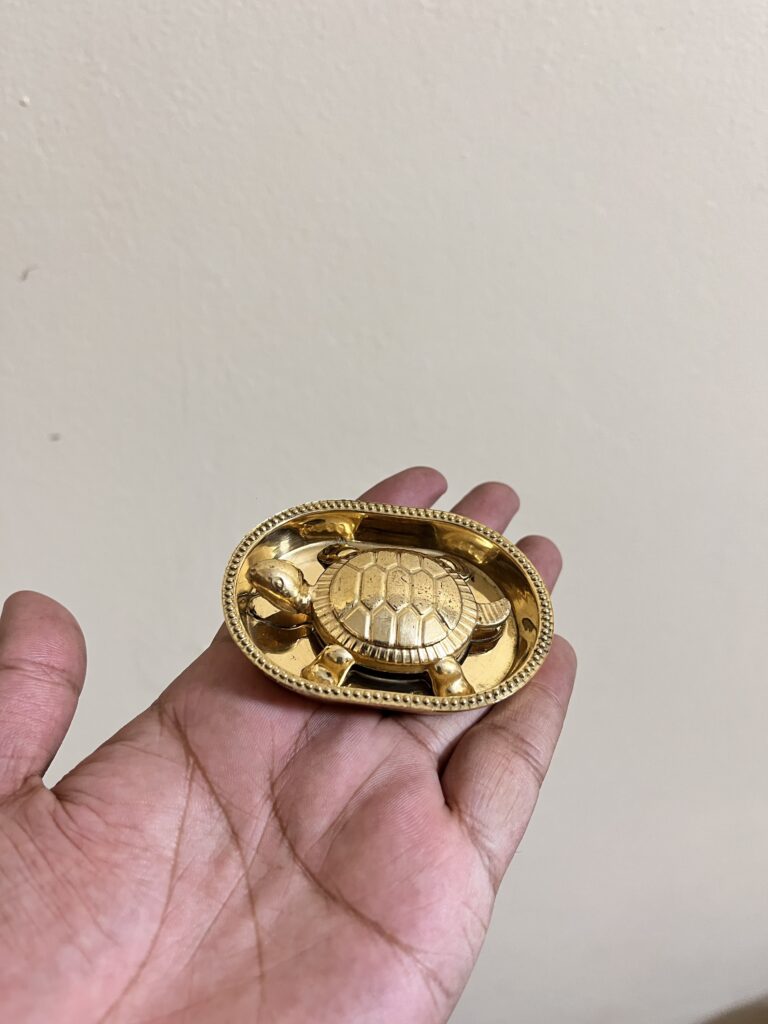 Brass Turtle Vastu Plate Set, 5x3cm, Traditional Feng Shui Decor for Home, Gold Finish, 70 gm