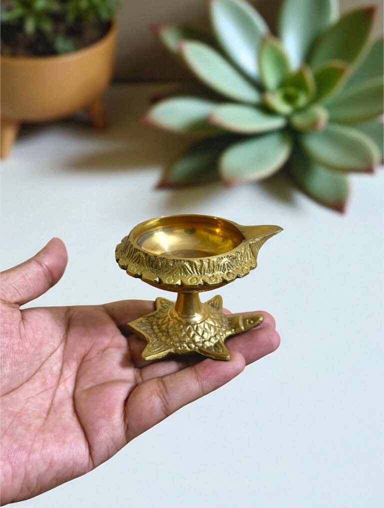 খাঁটি পিতলের তৈরি ছোট কচ্ছপ প্রদীপ। পূজা, বাস্তু ও সাজসজ্জার জন্য আদর্শ।
