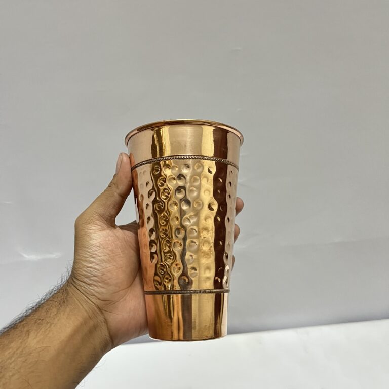 Hammered Copper Big Lassi Glass – Serving Drinking Water, Benefit Yoga Ayurveda, 500 ml (Brown)