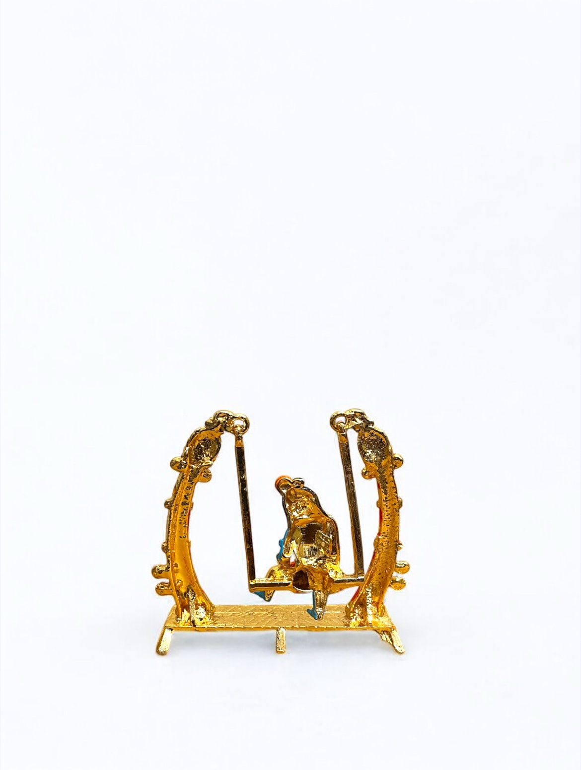 দস্তার তৈরি ছোট কৃষ্ণ বিগ্রহ – ঝুলনা সহ, পূজা ও ঘরের সাজসজ্জার জন্য আদর্শ।