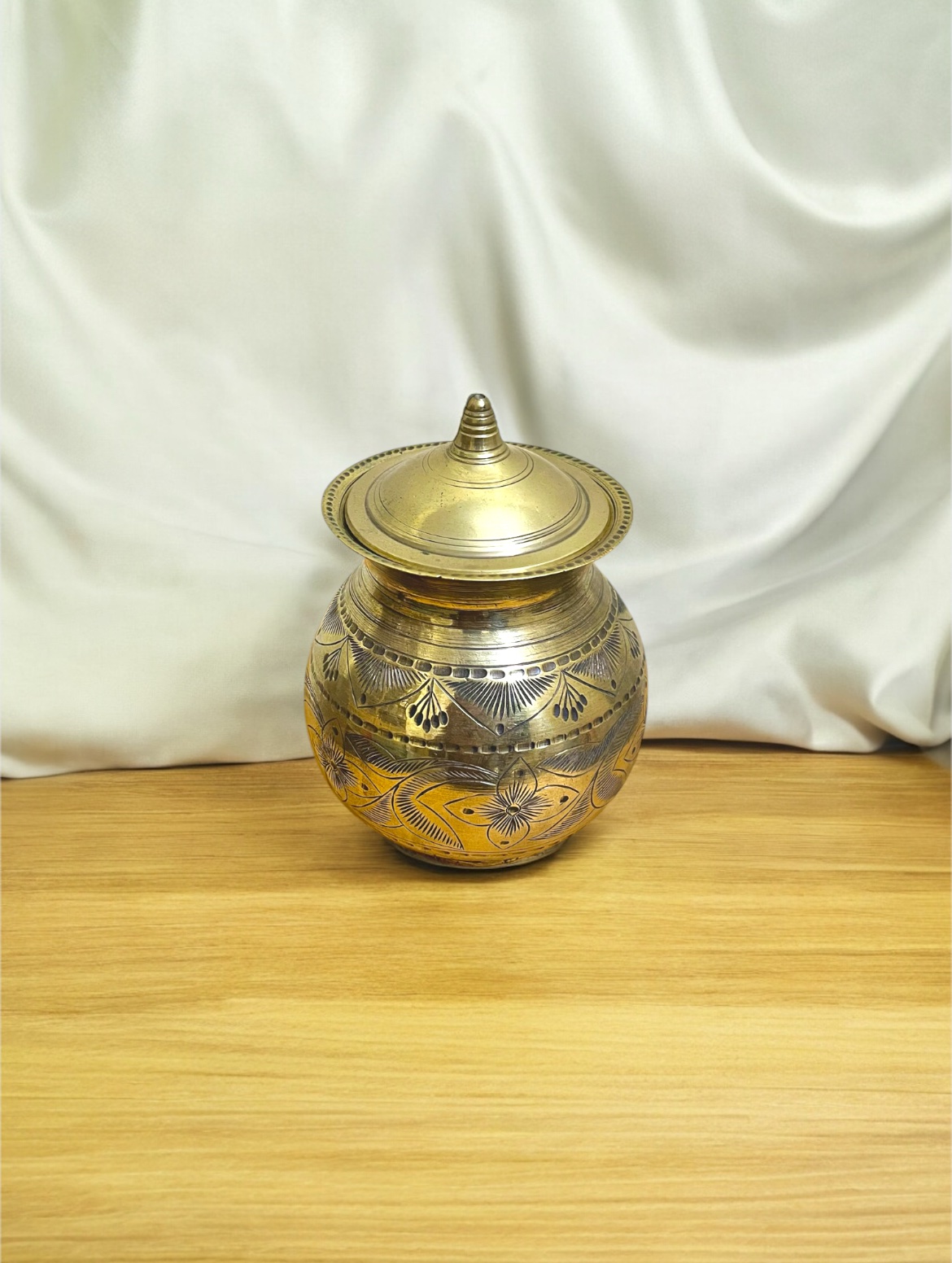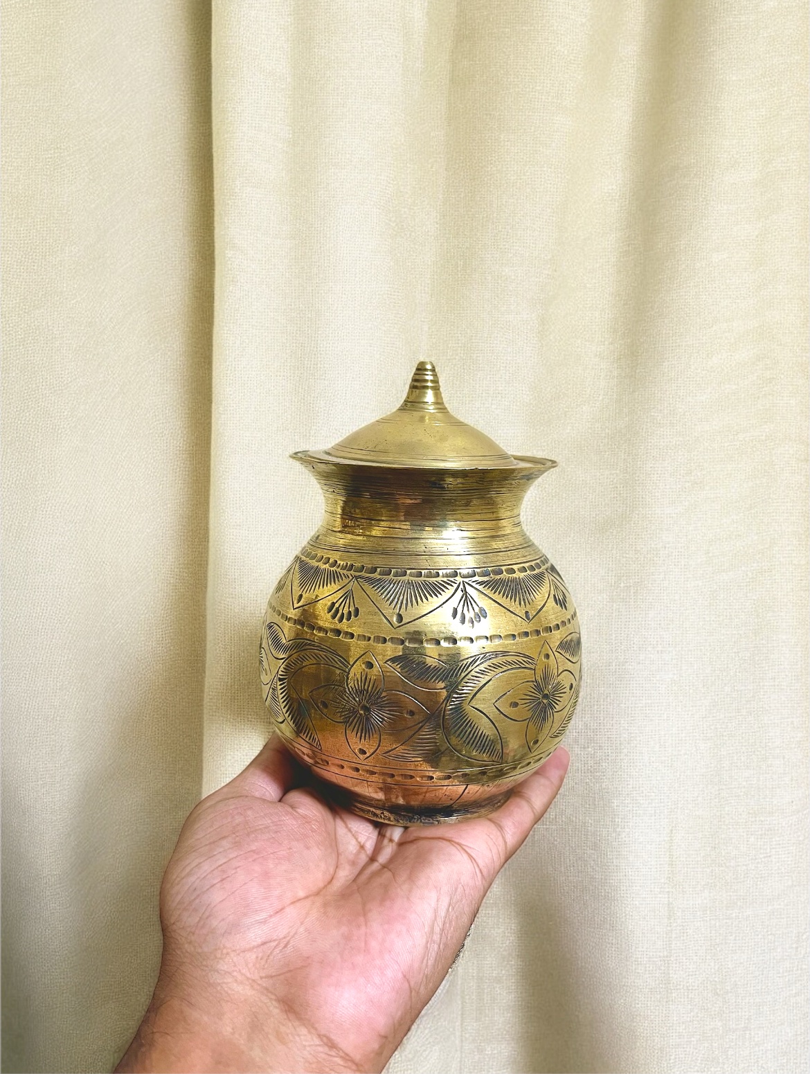 পিতলের নকশা ঘটি – ঢাকনা সহ | পুরনো কালেকশন | ৭০০ মিলি | ৫” | ৭৮০ গ্রাম